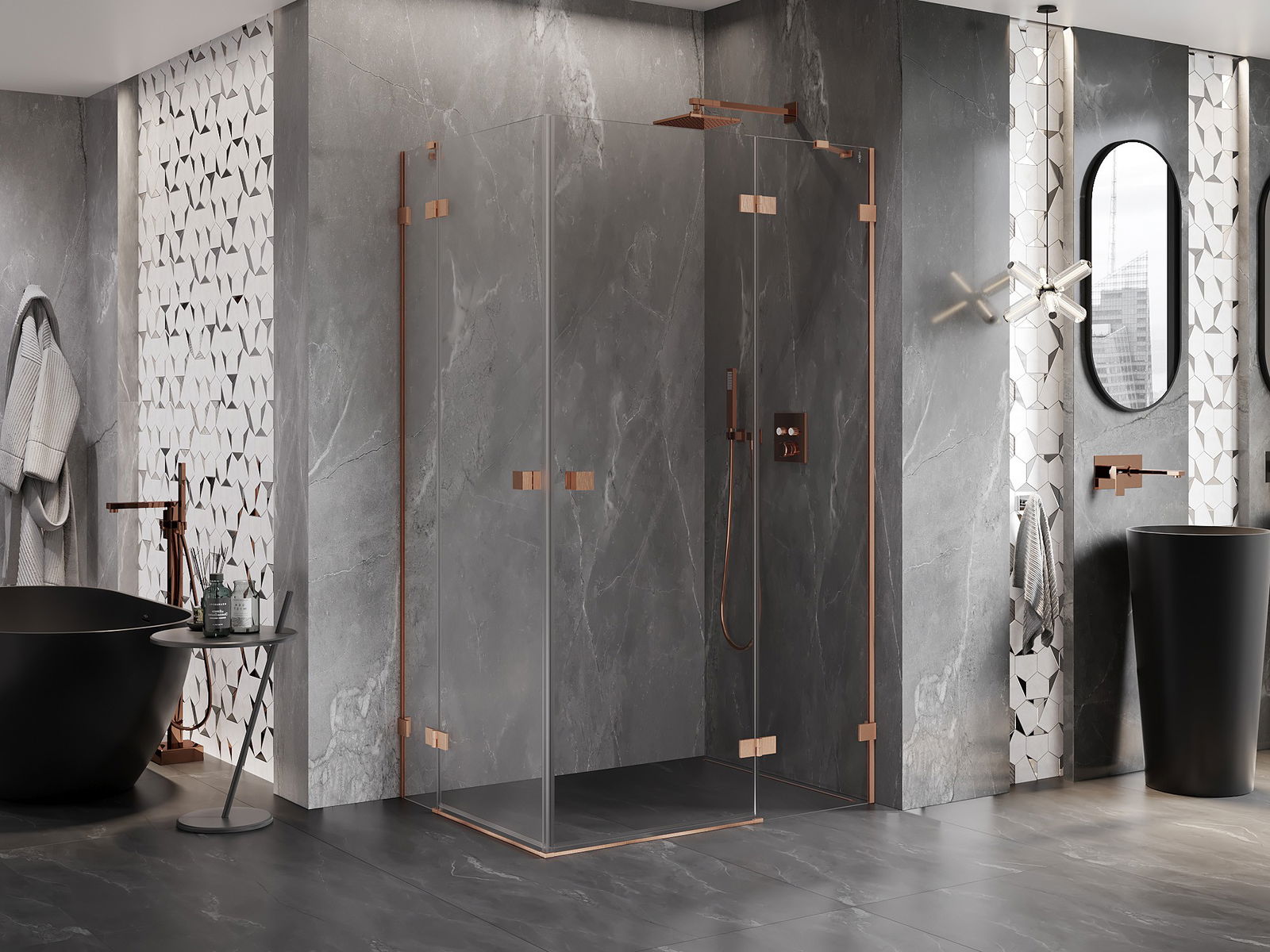 Mexen Lunar Duo Duschkabine rechts angeschlagen 105 x 95 cm, transparent, gebürstetes Kupfer - 834-105P-095L-65-00
