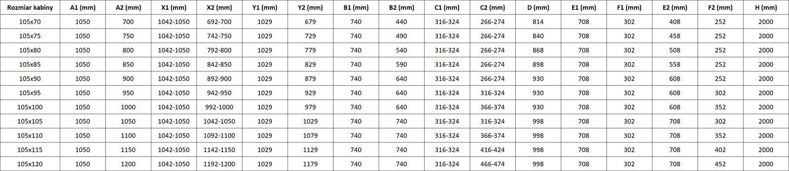Größe: 105x95 cm (rechte Tür 105 cm, linke Tür 95 cm)