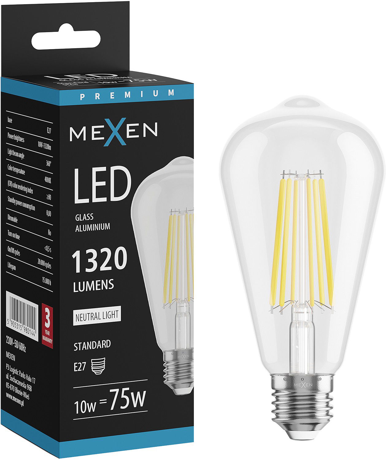 Mexen Vintis LED-Filamentlampe E27, ST64, 10W, Neutral - 4000K, 1320 lm, klar - L152-E27-1040-00
