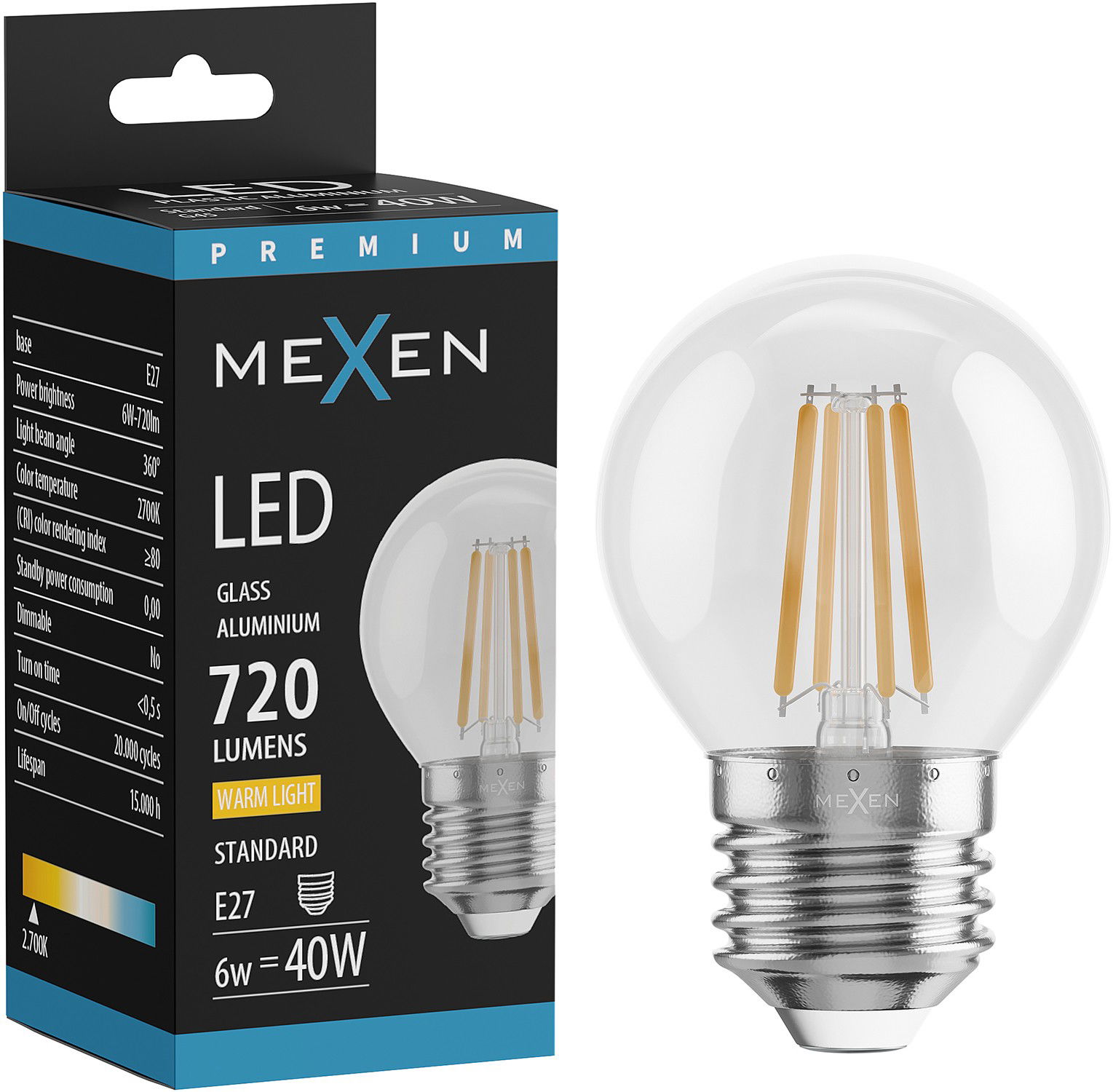 Mexen Vintis LED-Filamentlampe E27, G45, 6W, Warm - 2700K, 720 lm, klar - L156-E27-0627-00