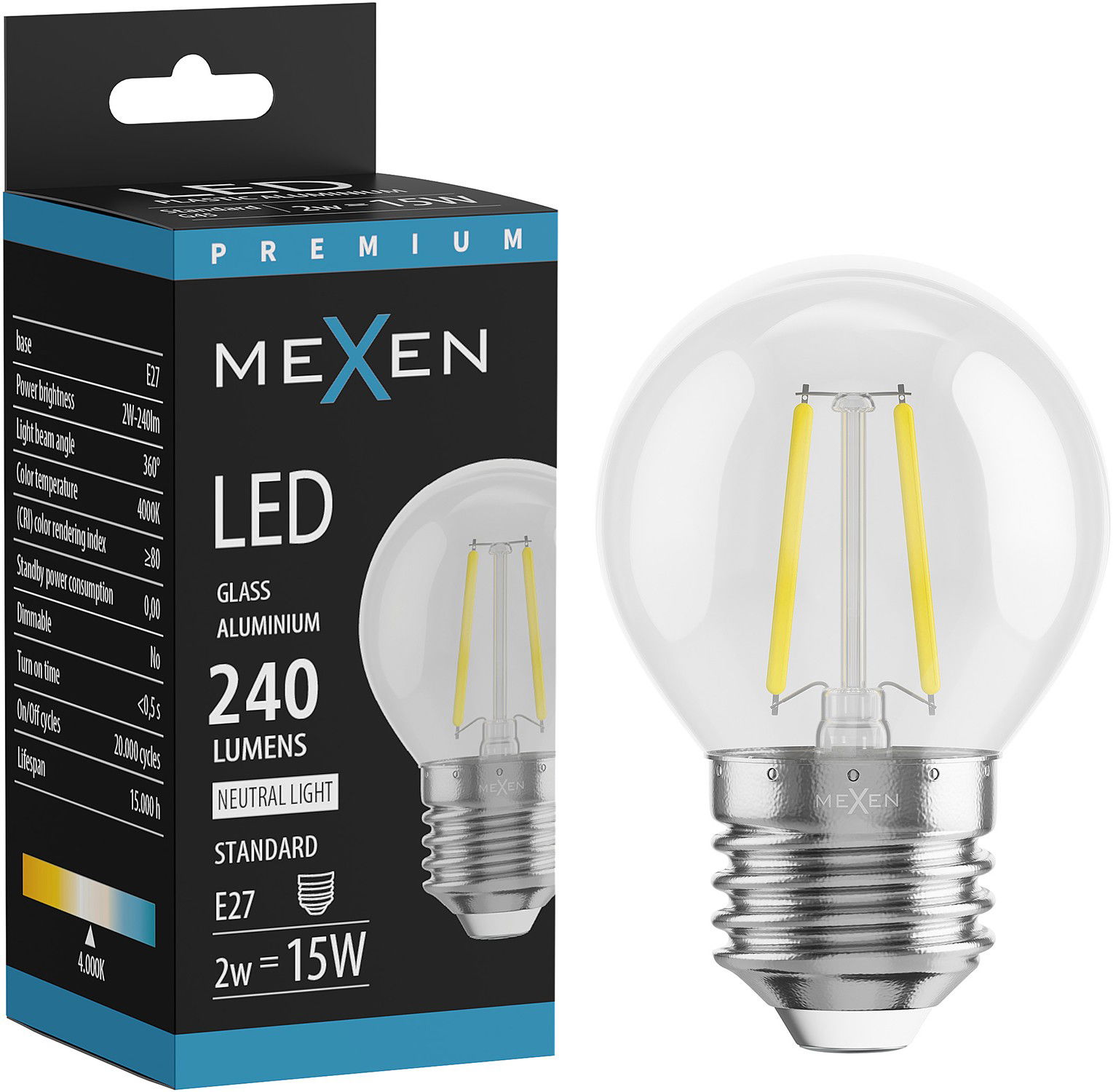 Mexen Vintis LED-Filament-Lampe E27, G45, 2W, Neutral - 4000K, 240 lm, klar - L156-E14-0227-00 - L156-E27-0240-00