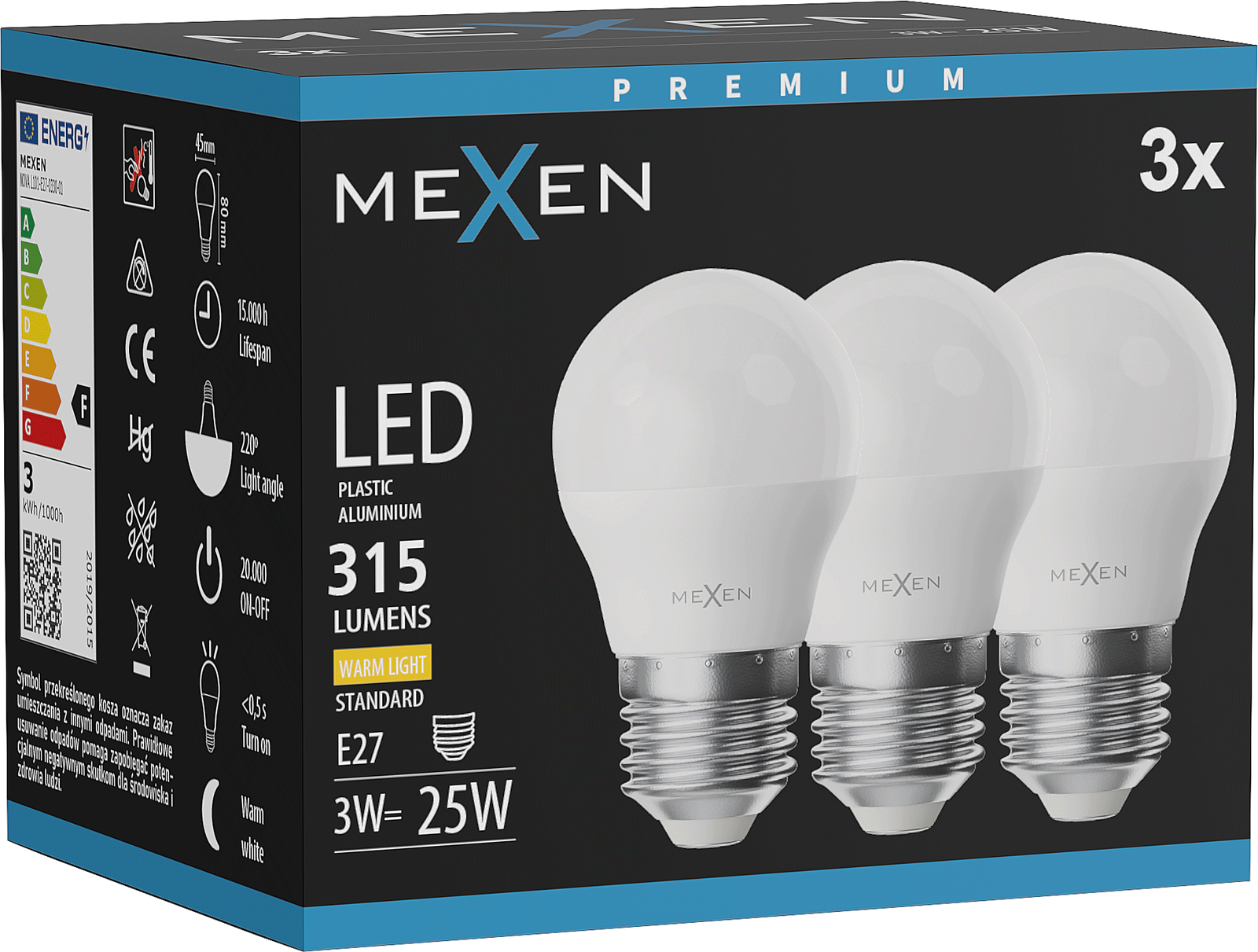 Mexen Nova 3x LED-Glühbirne E27, G45, 3W, Warm - 3000K, 315 lm - L101-E27-0330-01x03