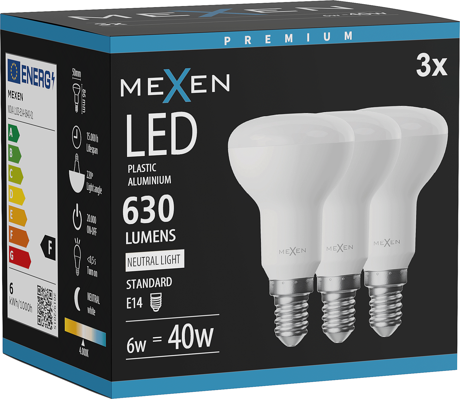Mexen Nova 3x LED-Lampe E14, R50, 6W, Neutral - 4000K, 630 lm - L103-E14-0640-01x03