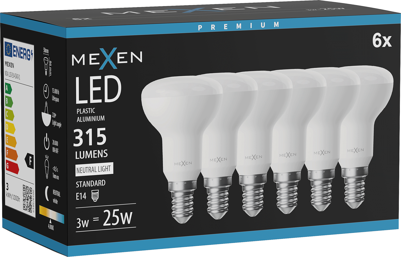 Mexen Nova 6x LED-Glühbirne E14, R50, 3W, Neutral - 4000K, 315 lm - L103-E14-0340-01x06