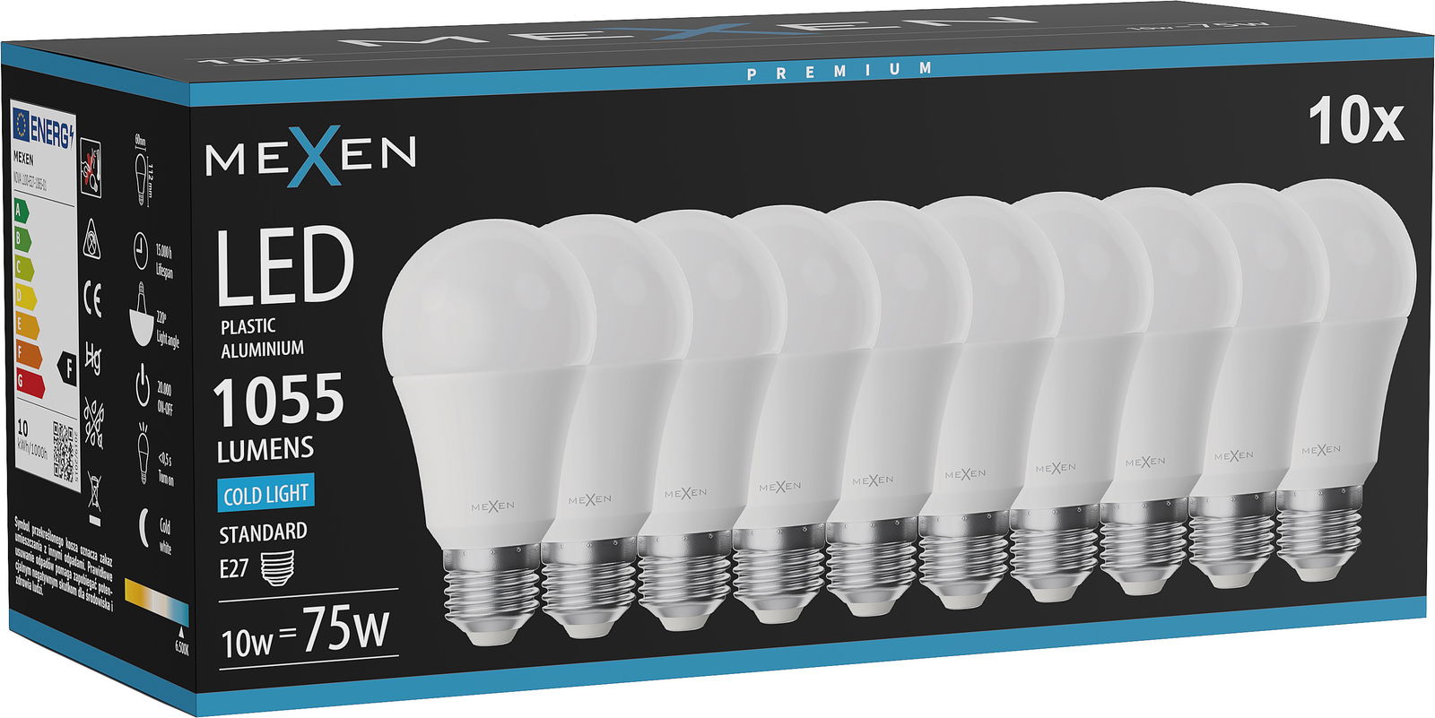 Mexen Nova 10x LED-Glühbirne E27, A60, 10W, Kalt - 6500K, 1055 lm - L100-E27-1065-01x10