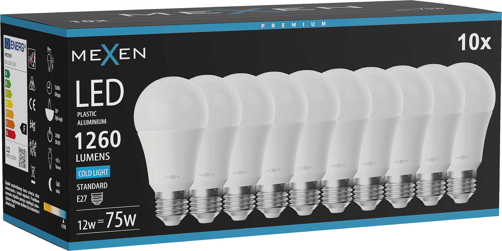 Mexen Nova 10x LED-Glühbirne E27, A60, 12W, Kalt - 6500K, 1260 lm - L100-E27-1265-01x10