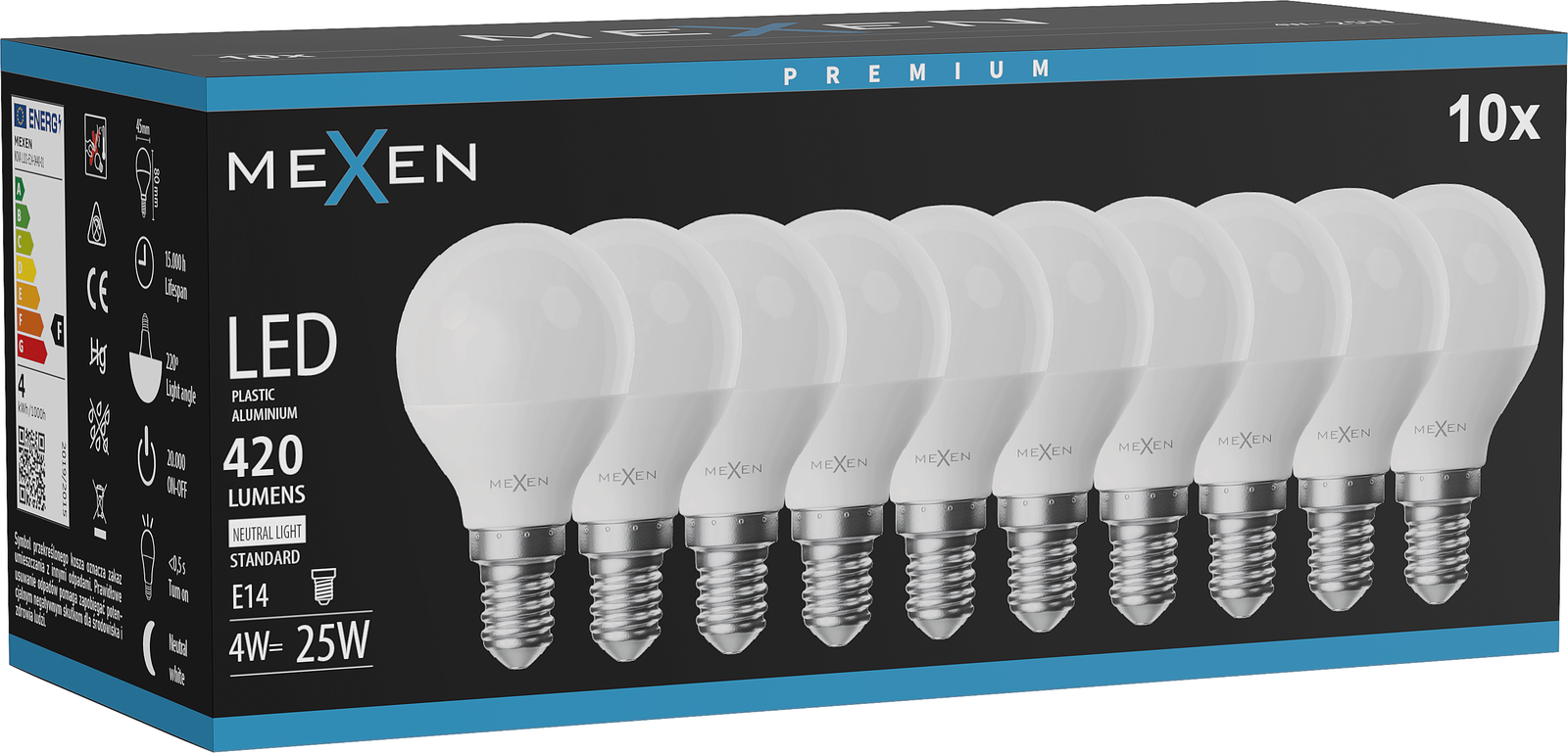 Mexen Nova 10x LED-Glühbirne E14, G45, 4W, Neutral - 4000K, 420 lm - L101-E14-0440-01x10