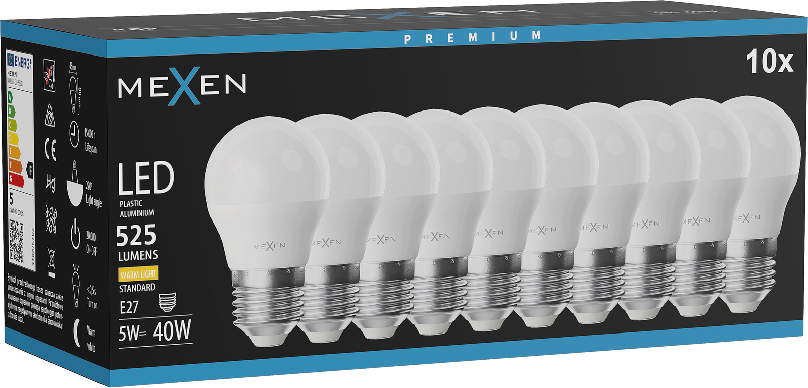 Mexen Nova 10x LED-Glühbirne E27, G45, 5W, Warmweiß - 3000K, 525 lm - L101-E27-0530-01x10