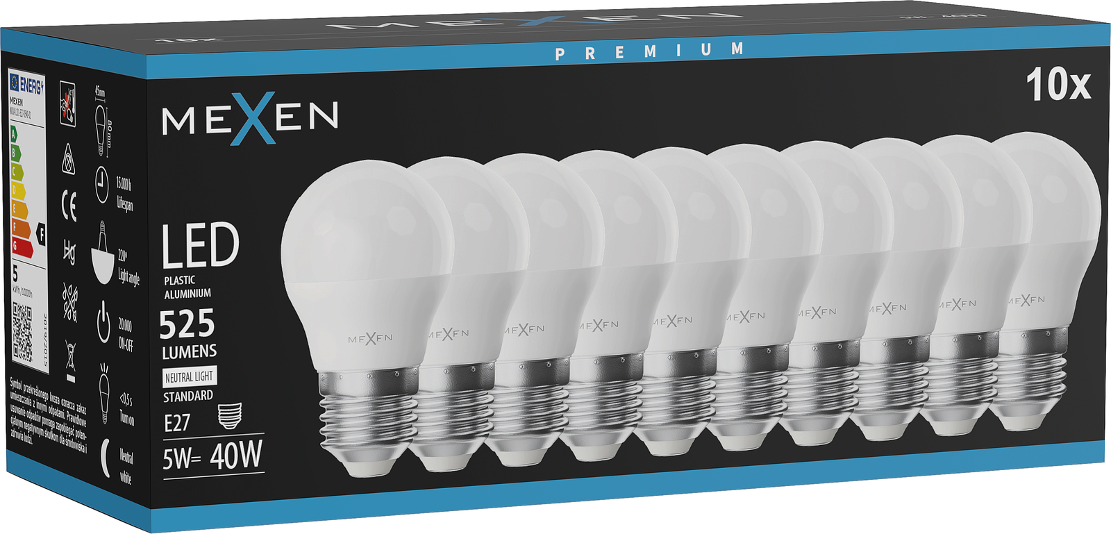 Mexen Nova 10x LED-Glühbirne E27, G45, 5W, Neutral - 4000K, 525 lm - L101-E27-0540-01x10