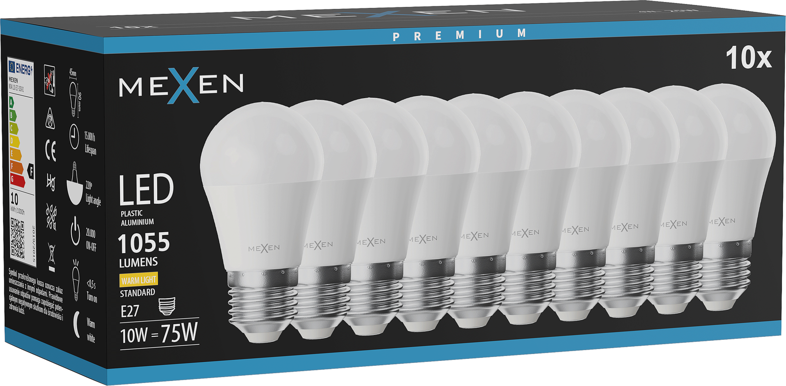 Mexen Nova 10x LED-Glühbirne E27, G45, 10W, Warm - 3000K, 1055 lm - L101-E27-1030-01x10