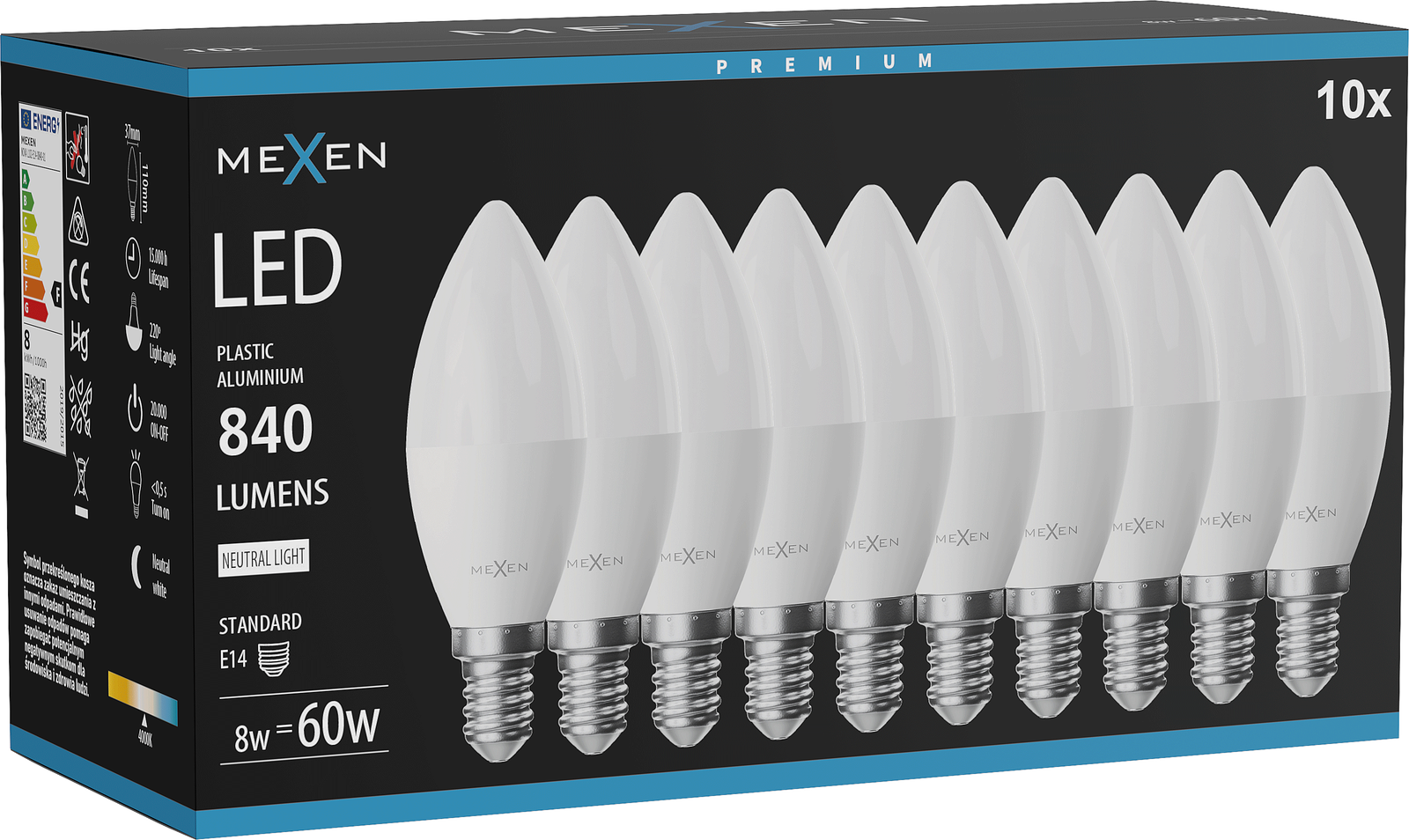 Mexen Nova 10x LED-Glühbirne E14, C37, 8W, Neutral - 4000K, 840 lm - L102-E14-0840-01x10
