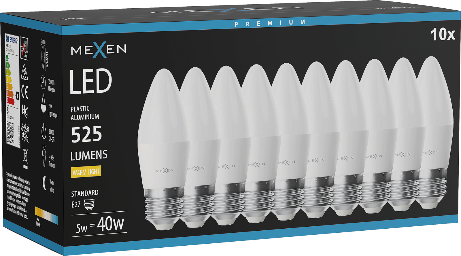 Mexen Nova 10x LED-Glühbirne E27, C37, 5W, Warm - 3000K, 525 lm - L102-E27-0530-01x10
