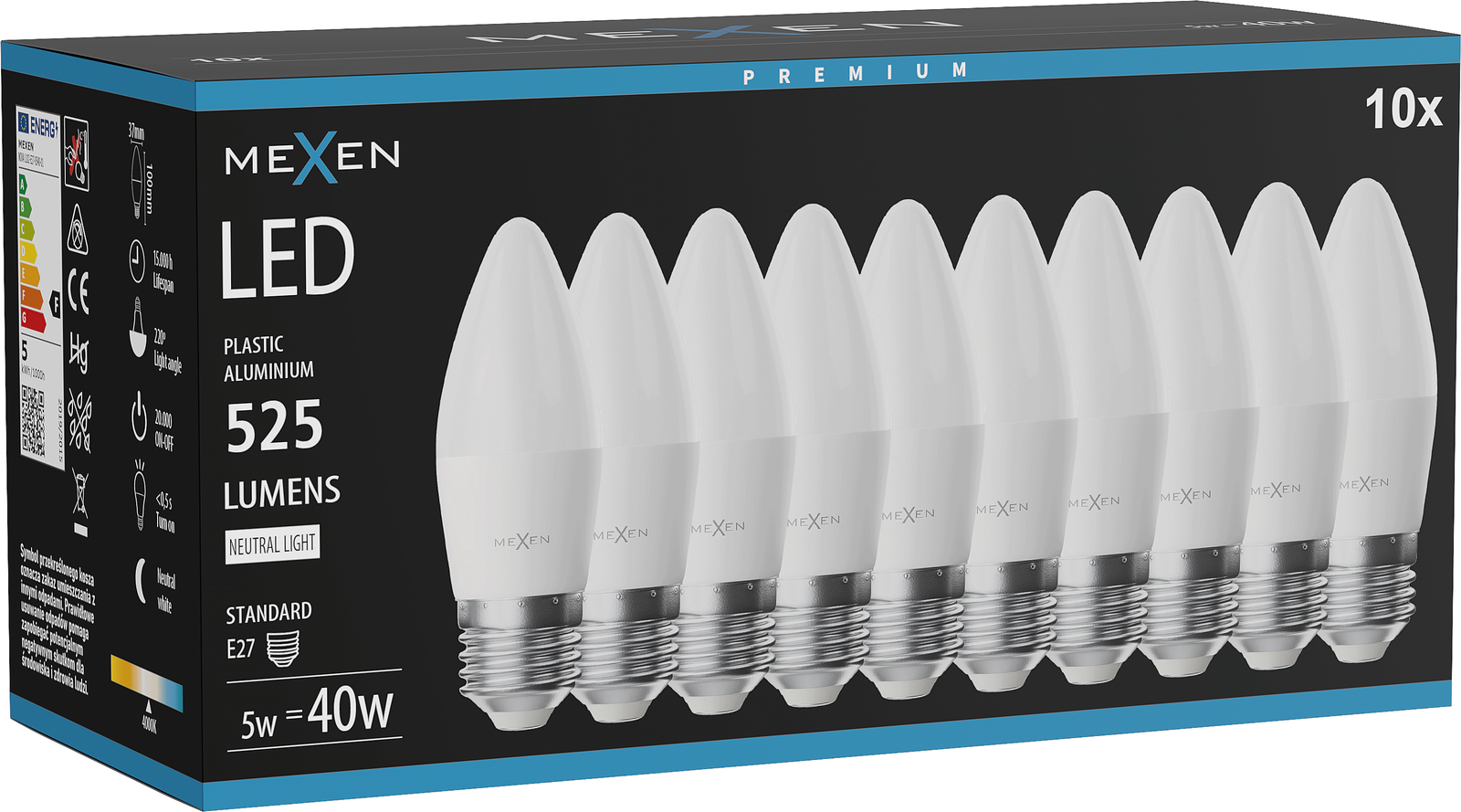 Mexen Nova 10x LED-Glühbirne E27, C37, 5W, Neutral - 4000K, 525 lm - L102-E27-0540-01x10