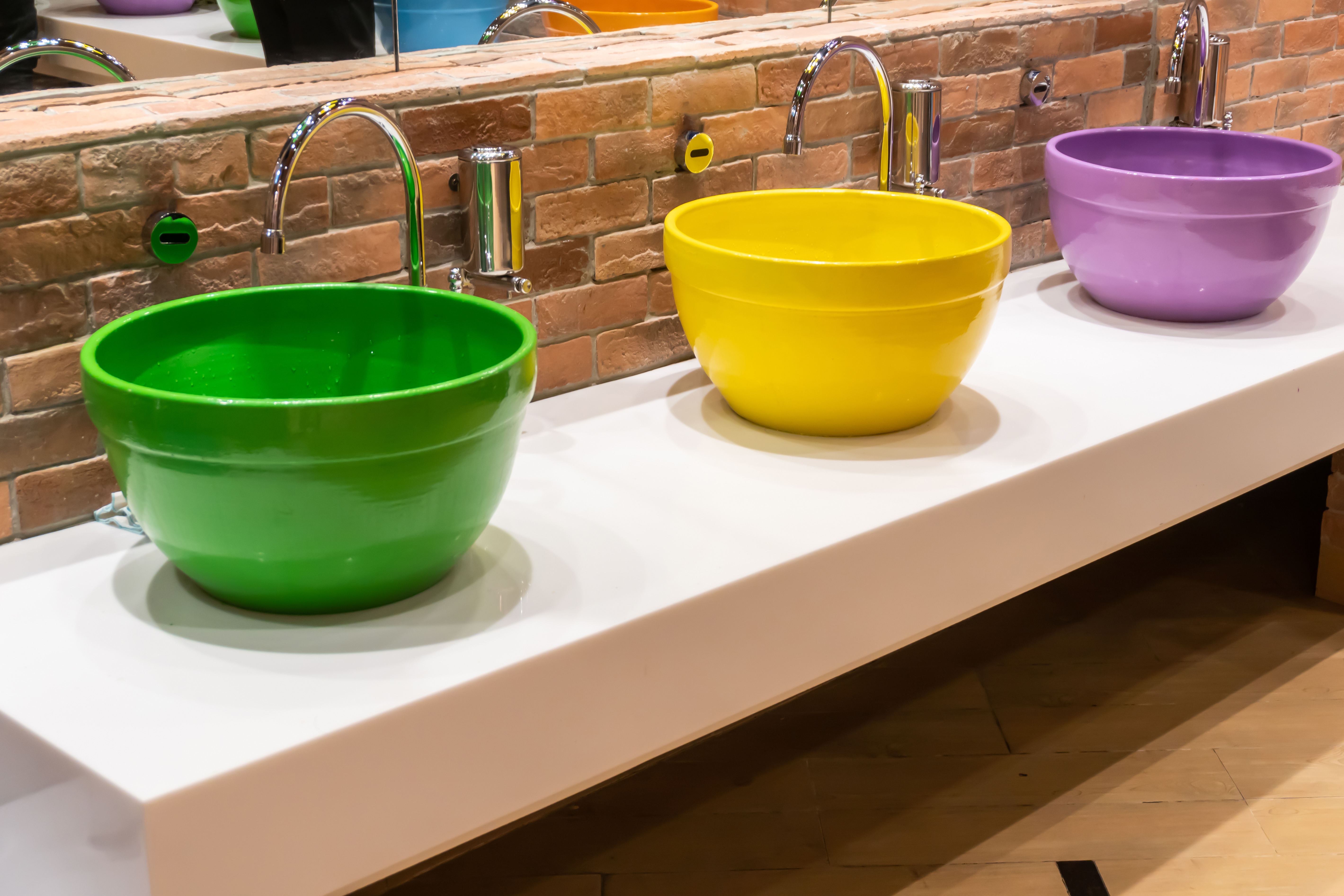 Bunte Waschbecken werden als Aufsatzwaschbecken produziert, damit die Farbe sichtbar ist. Neben der Farbe betont man auch ihre Einzigartigkeit mit sehr interessanten Formen, die manchmal sogar fantasievoll sind. Fröhliche, verspielte und asymmetrische Formen, zusätzlich bunt, bringen, wenn Kinder im Haus wohnen, eine sehr warme und fröhliche Atmosphäre ins Innere. Man kann auch mit der Kombination von Waschbecken in verschiedenen Farben experimentieren. In einem Badezimmer können zwei stehen, z.B. ein schwarzes und ein rotes oder auch ein grünes und ein gelbes. Die Vorbereitung für die Arbeit wird viel bequemer und das Design einzigartig.