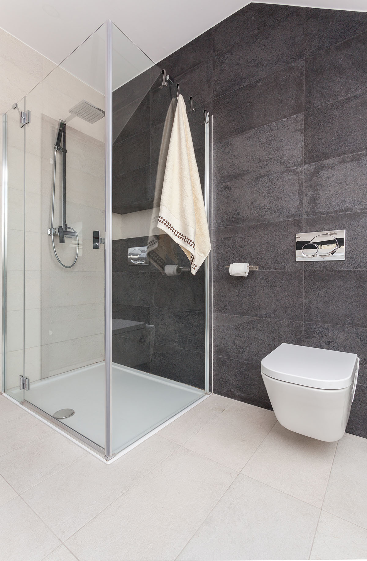 - Wand-Duschkabinen - sie befinden sich an der Badezimmerwand, benötigen aber in diesem Fall nur eine. Sie nehmen viel mehr Platz ein als typische Eckkabinen, da sie stärker in den Badezimmerbereich hineingehen. Auf dem Markt sind viele verschiedene Formen erhältlich, darunter auch Walk-In-Kabinen.