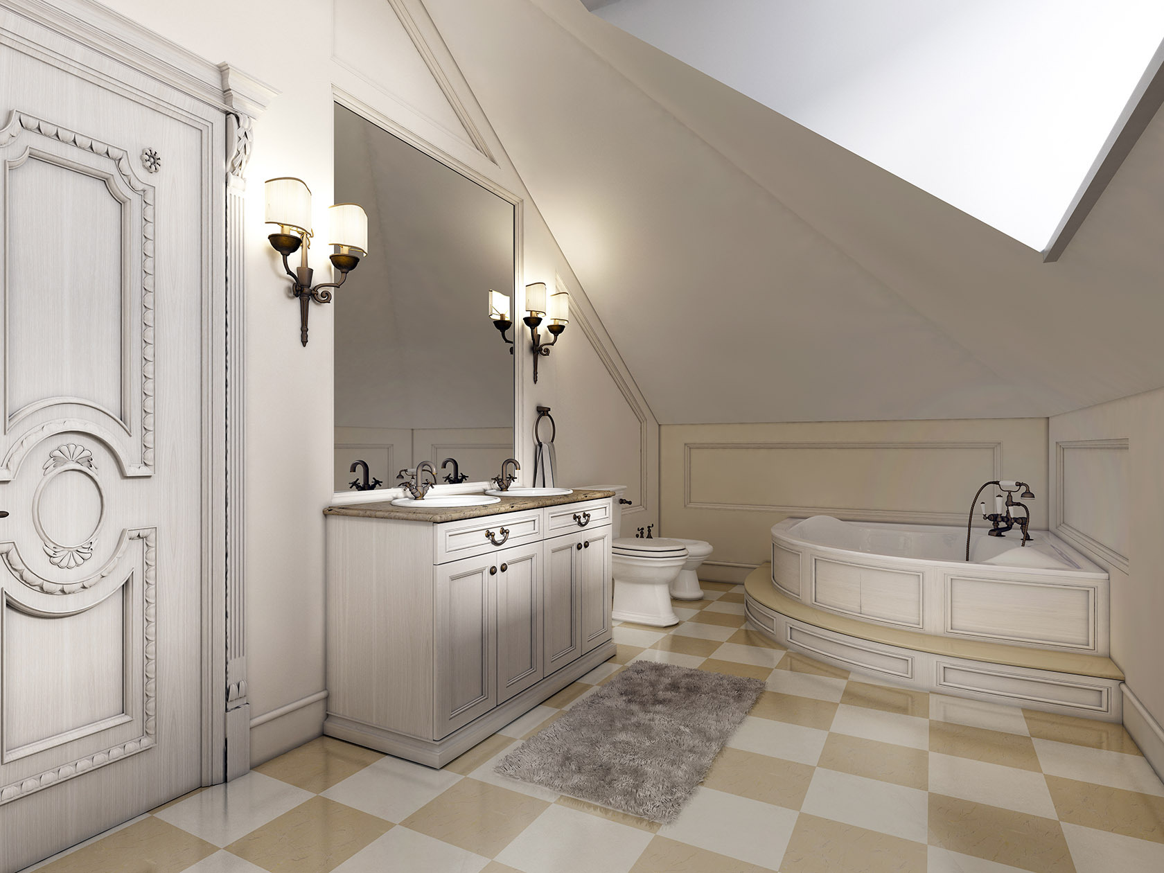 Schaffe einen stilistisch einheitlichen Raum um die Eckbadewanne