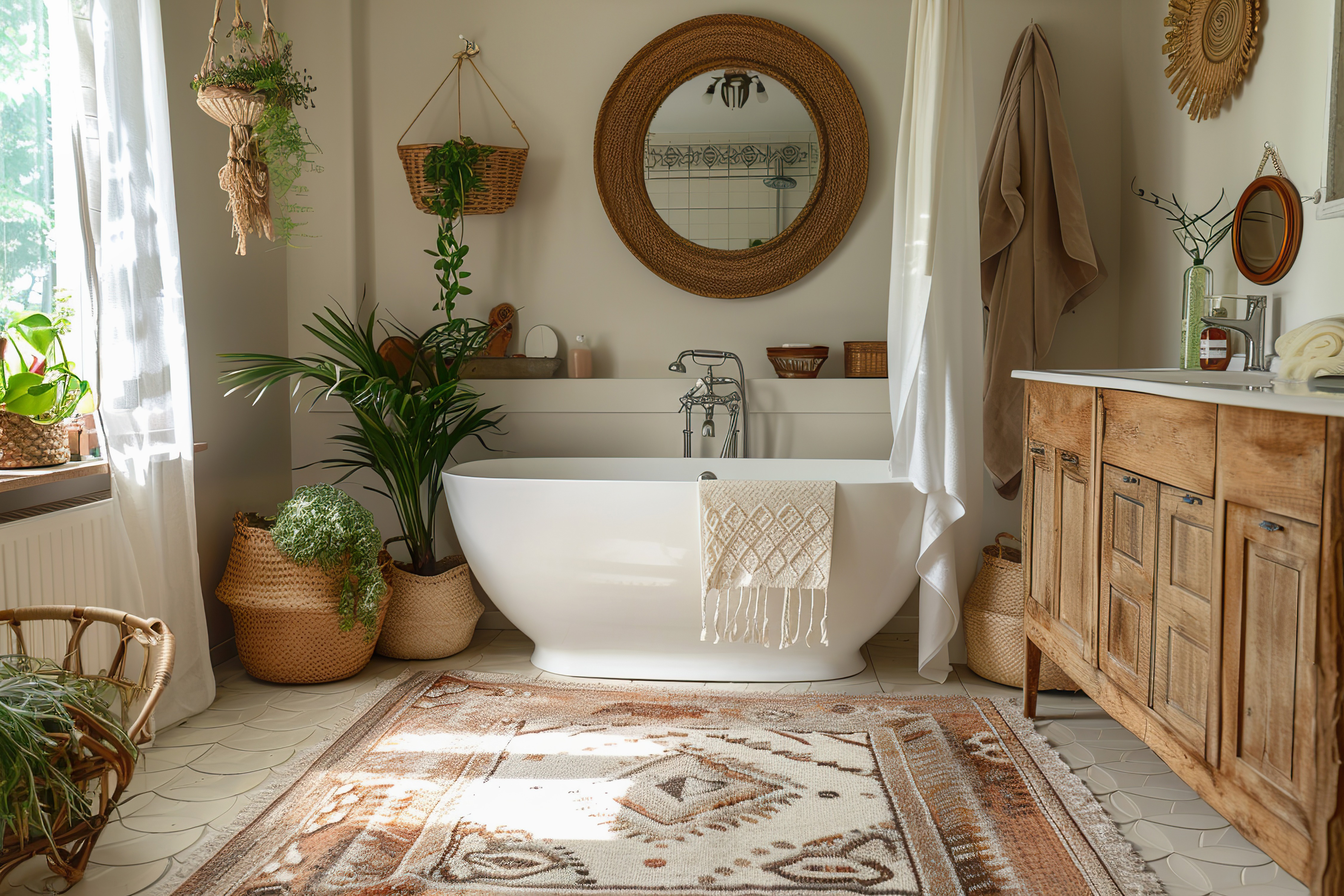 Harmonie heller Farben – Erdtöne und starke Akzente im Boho-Badezimmer
