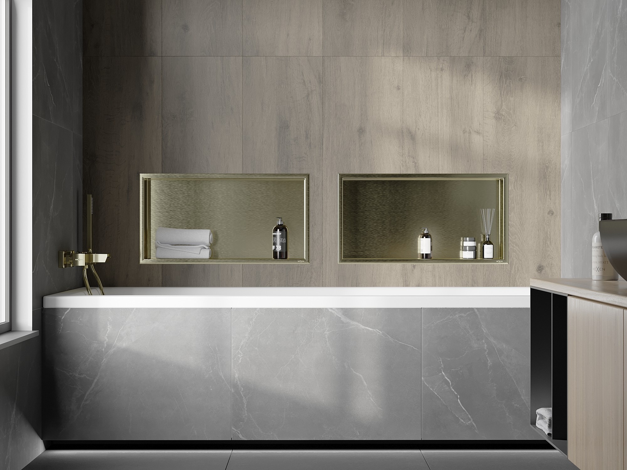 Es den Raum personalisiert – das Regal zwischen Badewanne und Wand kann aus verschiedenen Materialien hergestellt werden. Bei Mexen findest du eine große Auswahl an Nischenregalen aus Conglomerat, SMC – Kunststoff oder Edelstahl.