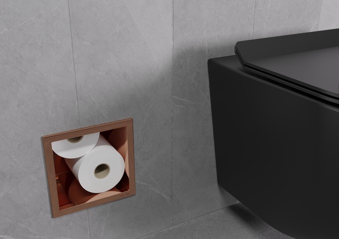 Man muss zugeben, dass ein Toilettenpapierhalter in Roségold ein eher ungewöhnlicher Vorschlag ist! In welchem Interieur findet sich ein solches Modell zurecht? Roségold kann man problemlos mit den einfachsten Farben wie Schwarz, Weiß oder Grau kombinieren. In deren Begleitung wird es hervorstechen und ins Auge fallen. Was Muster betrifft, kann diese Farbe eine interessante Komposition mit Fliesen schaffen, die Mosaik darstellen oder Marmor nachahmen. Eine solche Kombination zieht die Aufmerksamkeit jeder Person auf sich! Um das Interieur bestmöglich zu präsentieren, setzen Sie auch auf andere Elemente in dieser außergewöhnlichen Farbe. Dies kann ein Duschsystem, ein Waschtischarmatur oder ein Spiegel sein, aber auch kleine und einfache Zubehörteile wie Seifenspender, Zahnbürstenhalter, Kerzen oder Handtücher. Übertreiben Sie jedoch nicht mit der Menge an roségoldenen Elementen, da diese Farbe recht auffällig ist und das Interieur überwältigen kann. In der richtigen Menge ermöglicht sie Ihnen, ein einzigartiges und unvergleichliches Badezimmer zu schaffen, das jedem gefallen wird!